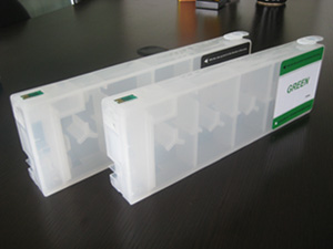 适用于epson stylus pro 7900\9900\7700\9700\7710\7910\9710\9910\7908\9908系列大幅面喷墨打印机本品除了保留原有的灌注墨水方便,可重复使用的特点,还引入全新设计理念,使产品可灌装更多容量的墨水,并使用最新大容量芯片技术,减少复位次数,从而增加稳定性。因此,本品较之其他同类产品,具有容量大,芯片稳定,不漏墨,不渗墨,不膨胀,插拔自如,无须放气的特点。另外,该产品还有自动复位墨盒供客户选购。让您使用更加轻松、方便。