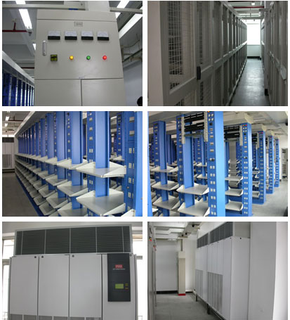 广内电话局数据中心面积共460平米。为客户提供开放式机架两种托管服务,电信级高端路由器双归上联,单链路负荷不超过50%,网络接入设备双机热备连接网络核心节点。双路市电接入UPS主机2套共4台1+1并联冗余方式运行;柴油发电机后备保障(采用1375kVA/1100kW油机备份的形式),机房地板承重大于600kg/㎡,抗震烈度大于8级,梁下高度大于3.2m。机房环境温度22±2℃,湿度30~70%。7x24网络技术支持及安消防服务。