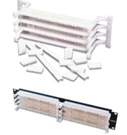110型连接管理系统的基本部件是110配线架、连接块、跳线和标签。110配线架有25对、50对、100对、300对多种规格。110配线架装有若干齿形条,沿配线架正面从左到右均有色标,以区别各条输入线。这些输入线放入齿形条的槽缝里,再与连接块接合,利用788J1工具,就可将配线环的连线“冲压”到110C连接块上。