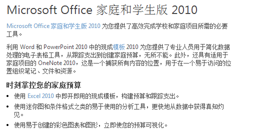 版本特性:《Microsoft Office 家庭和学生版 2010》为您提供了高效完成学校和家庭项目所需的必要工具。利用 Word 和 PowerPoint 2010 中的现成模板,学生可以通过帮助他们有创意地表达其想法的丰富视觉效果和媒体编辑功能,创建出色的作业。Excel 2010 为您提供了专业人员用于简化数据处理的电子表格工具,从跟踪支出到创建家庭预算,无所不能。此外,还具有适用于家庭项目的 OneNote 2010,这是一个捕获所有内容的位置,用于在一个易于访问的位置组织笔记、文件和资源。