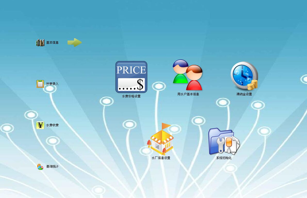 2.用水户信息3.滞纳金设置4.水厂信息设置5.系统初始化)