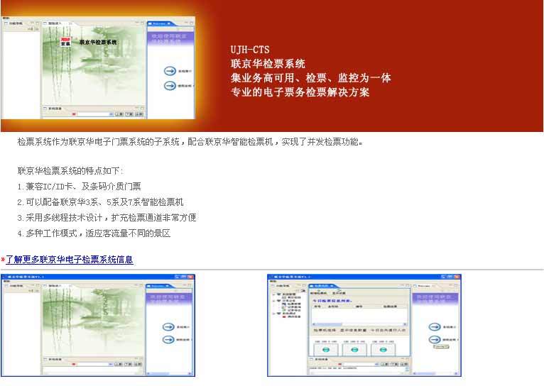 检票系统作为联京华电子门票系统的子系统,配合联京华智能检票机,实现了并发检票功能。