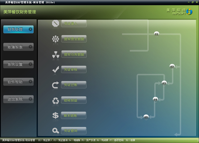 美萍餐饮ERP管理系统是美萍公司推出的一款专业的餐饮管理软件(餐饮收银系统,餐饮收银软件),它集前台收费系统,员工管理系统,会员管理系统等强大功能为一身,系统界面简洁优美,操作直观简单,无需专门培训即可正常使用。美萍餐饮 软件为餐饮业经营者提供了成本分析,利润分析,物流管理等诸多功能,能广泛适用酒店餐饮管理,饭店餐饮管理等场合。美萍餐饮娱乐管理系统,餐饮娱乐管理软件是您提高餐饮经营水平,杜绝管理漏洞,增加效益的强大武器。ERP管理专业版软件适用于一些中小型的、要求实现比较全面电脑管理、工作强度比较大、数据安全性要求高的餐饮场所。对数据安全性要求高、工作强度大、数据存储量大的餐饮场所的理想选择。