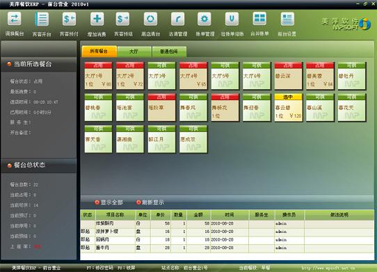 美萍餐饮ERP管理系统是美萍公司推出的一款专业的餐饮管理软件(餐饮收银系统,餐饮收银软件),它集前台收费系统,员工管理系统,会员管理系统等强大功能为一身,系统界面简洁优美,操作直观简单,无需专门培训即可正常使用。美萍餐饮 软件为餐饮业经营者提供了成本分析,利润分析,物流管理等诸多功能,能广泛适用酒店餐饮管理,饭店餐饮管理等场合。美萍餐饮娱乐管理系统,餐饮娱乐管理软件是您提高餐饮经营水平,杜绝管理漏洞,增加效益的强大武器。