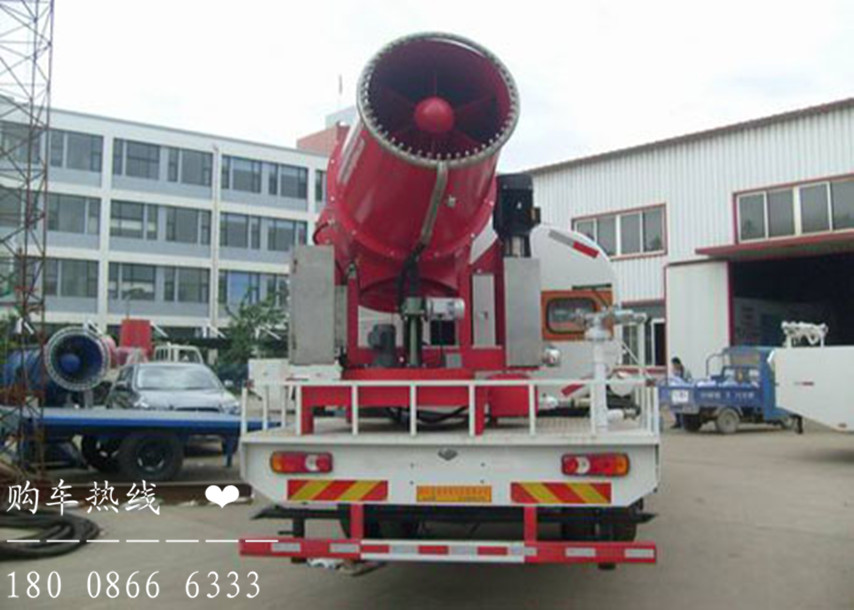 喷雾降尘车喷雾作业最远喷水距离为60到200余米,最大蓄水量近10吨,主要作用是喷雾抑尘,同时具备洒水和道路冲洗功能,可以有效抑制灰尘、ph2.5、降温等等,当空气质量重超标时可随意选定一个区域进行液雾降尘、分解淡化空气中的颗粒浓度、将飘浮在空气中的污染颗粒物、尘埃等迅速逼降地面,达到清洁净化空气的效果。