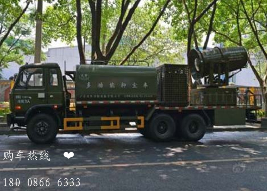 多功能抑尘车喷雾作业最远喷水距离为60到100余米,主要作用是喷雾抑尘,同时具备洒水和道路冲洗功能,有效抑制扬尘的产生。在城市遭遇雾霾天气、空气质量PM2.5严重超标时,可随意选定一个区域进行液雾降尘、分解淡化空气中的颗粒浓度、将飘浮在空气中的污染颗粒物、尘埃等迅速逼降地面,达到治理净化空气的良好效果。对农场粮棉大面积农作物和果园农药雾化喷洒的工作效率十分高。