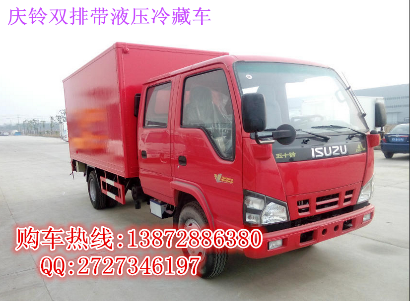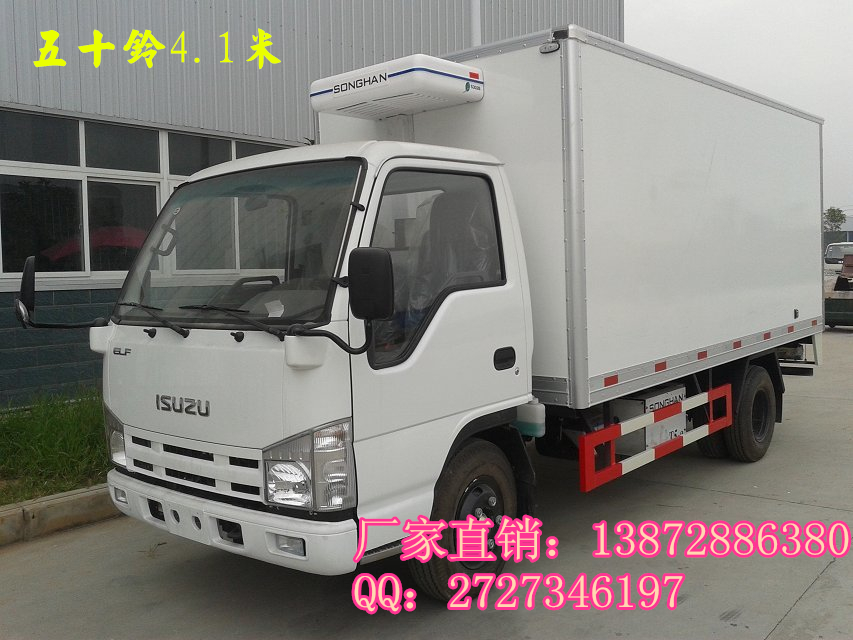 五十铃冷藏车,采用庆铃发动机95匹马力,箱体长4.0 米,单排可翻转驾驶室,断气刹,方向助力,箱体采用外面玻璃钢里面彩钢板,中间8cm聚氨酯保温材料,保温性能达到国家a级标准。