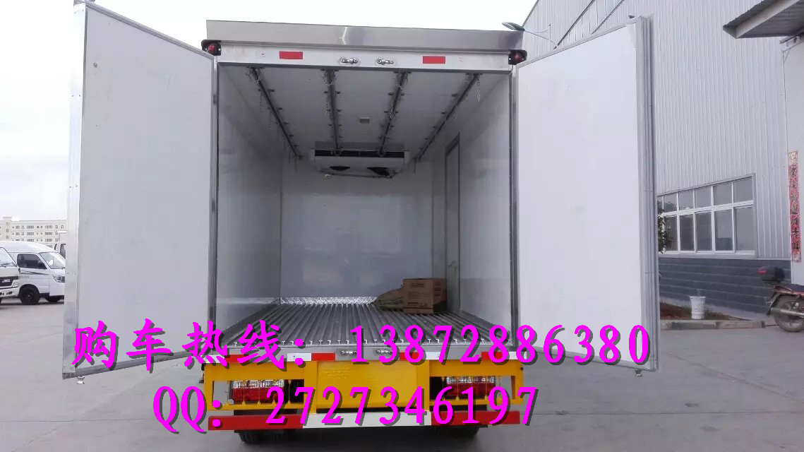 冷藏车厢体采用拼装技术,厢板采用全塑全封闭复合材料板组合结构,内外壁板选用优质玻璃钢或合金防锈铝板、不锈钢板,中间夹层为聚氨脂发泡隔热材料,各板块间用高强度胶粘接,并用内埋高强度螺钉进行紧固,配以铝合金型材铆接成整体。在厢体与门体间加装抗低温绝热密封条,门锁机构采用国际厢式车不锈钢标准件,厢板无接缝、外表光洁、易清洗、抗冲击、耐腐蚀。可根据用户需求专业设计,厢内可随意配置:如货物固定装置,货物悬挂装置,厢内货架,保温门帘等。厢内后门五金件均为不锈钢制品,豪华美观。