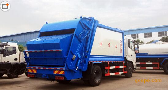 ★ 压缩式垃圾车:采用机电液一体化技术,借助机、电、液联合自动控制系统,通过车厢、填装器和推铲等专用装置,实现垃圾倒入、压碎或压扁、强力装填,把垃圾挤入车厢并压实和推卸。其主要特点是垃圾收集方式简便、高效、具有自动反复压缩以及蠕动压缩功能,压缩比高,装载质量大,作业自动化,动力性、环保性好,整车利用效率高。