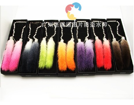 供应最新款彩色水貂毛挂件 品名:彩色水貂毛挂件 款式:7个颜色 规格:120只/箱