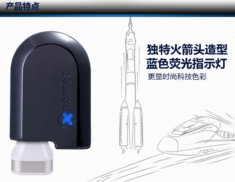 独特火箭头造型,,蓝色荧光指示灯,更显时尚科技色彩。