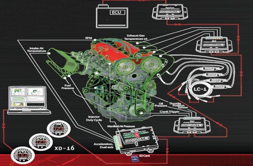 Innovate Motersports发动机调教系统可以智能测量发动机的空燃比、系统温度(排气温度、进气温度、冷却水温度、机油温度)、系统压力(进气压力、燃油压力、机油压力、空气流量)、转速、真空度(增压)、加速度(加速加速度,制动减速度,转向加速度)、节气门位置等,几乎涵盖汽车上所有传感器的测量参数,真正实现发动机的离线测量与车载测量相同的效果。