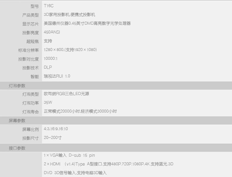 新品瑞视达T16C 投影机 3D智能高清微型 1080P家用