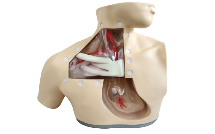 该模型用于经中心静脉插管患者给予肠外营养的治疗和护理,训练中心静脉置管和相关消毒、穿刺、固定等操作。