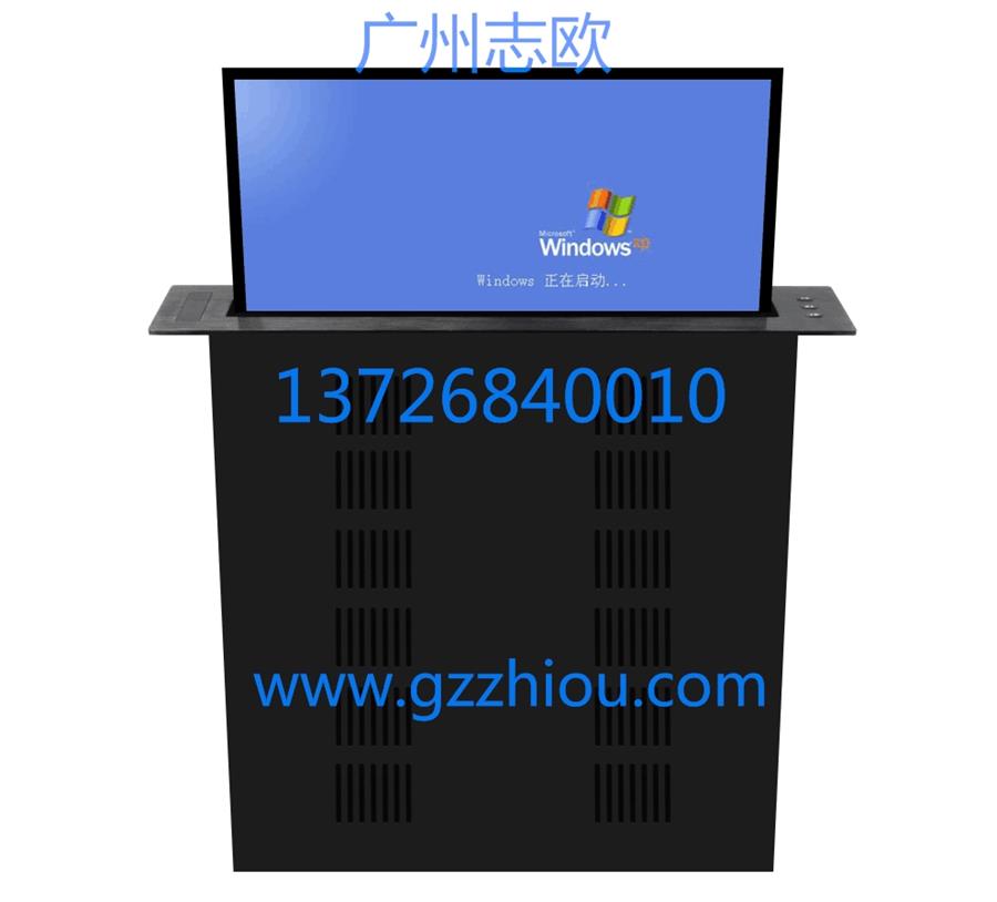 液晶升降器,安装于各类办公桌内,实现显示器的自动升降.,简约大方经典时尚. 可以满足显示器不用拆卸及避免横七竖八布线的需要,充分利用桌面以下的空间,把显示器藏于桌底下,可以在需要使用时触发控制器,仓盖自动打开、显示器升至桌面,并可依据需要向后仰一定的角度。该升降系统显示屏升上来后,可随时根据视角向后调整显示屏一定的角度便于达到佳视角效果;不用时又可以收回桌底,并自动恢复显示屏的初设角度,满足于不同与会者的要求。可以通过集中控制器集体控制,也可以单屏控制。液晶升降器可选择不同的控制方式,单台遥控或多台集控等.适用于办公室,会议室,产品演示厅. 任意角度的调整液晶屏的方向;自动复位内置锁定。