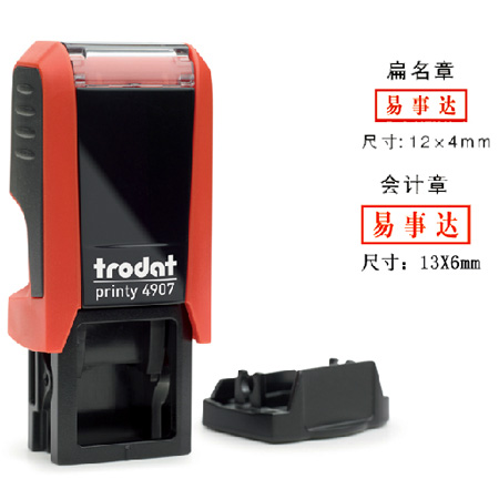 卓达4907印章也名姓名章、签名章,其尺寸小巧,仅为13*6mm,印章内容为纯文本式。使用过程能够自动回墨,方便携带,为生产办公提高效率!