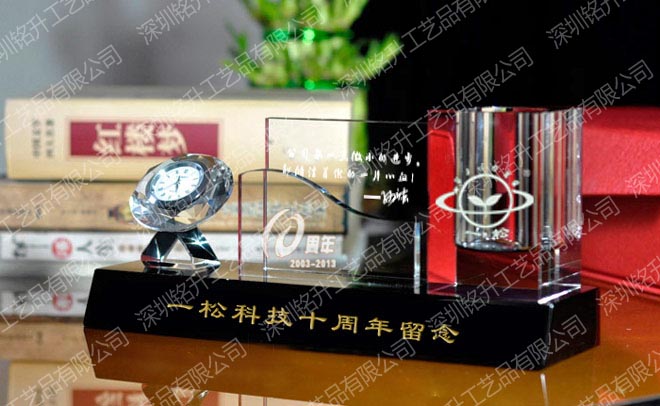 十周年水晶办公纪念品定做 公司经销商大会水晶办公摆件定做
