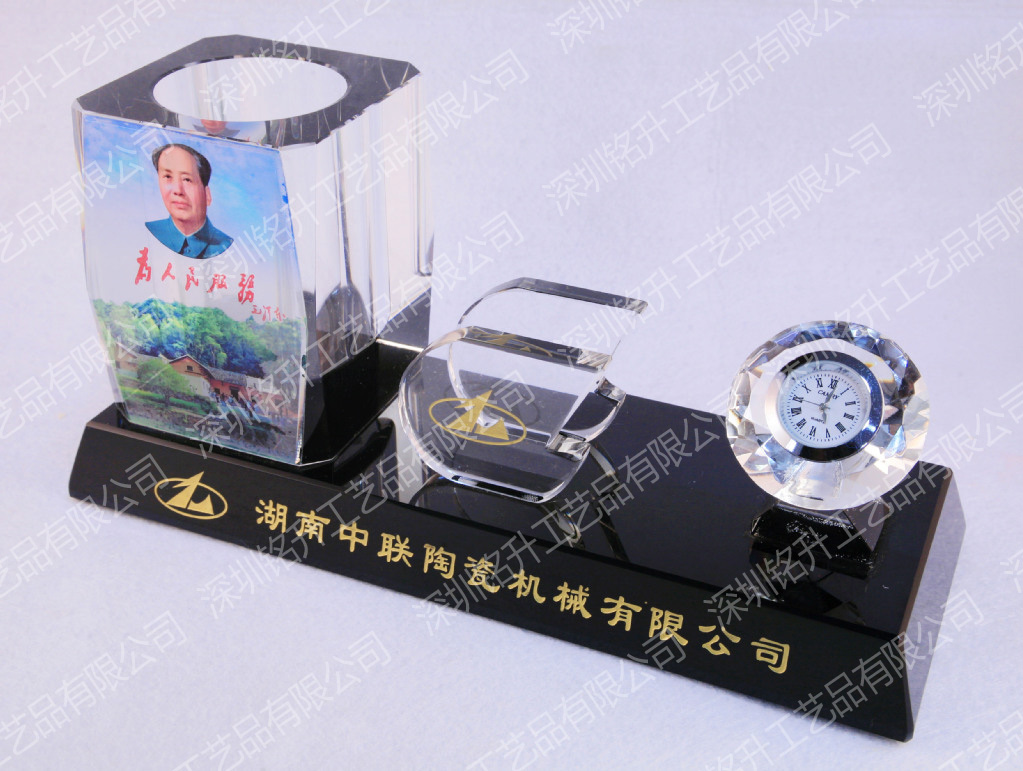 校园征赛纪念礼品 水晶笔筒摆台定制价格 文艺活动纪念品