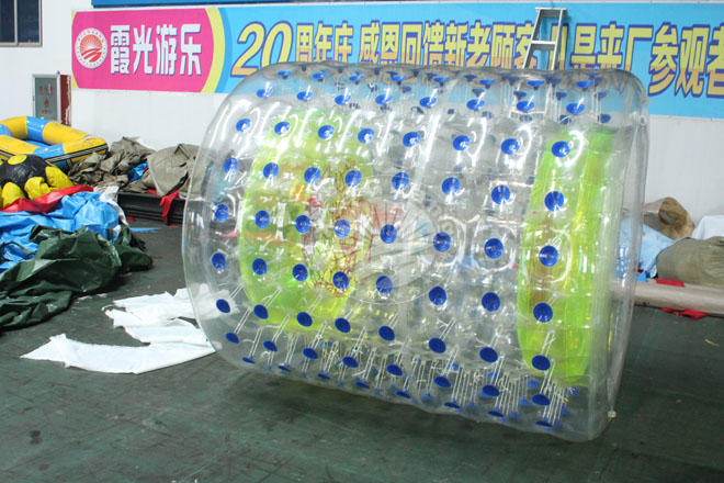 霞光游乐水上滚筒使用材料为聚醚TPU材质;水上滚筒常用材质可分为三种:1.聚醚TPU材质,特点该材质不受季节气温等影响,成本偏高,游玩舒适。2.TPU与PVC混合材质,该材质气味刺鼻,不适合长期经营,成本适中。3.PVC材质,PVC材质受气温的影响比较大,尤其在冬季PVC材质的充气玩具会变的发硬,导致游玩不舒服,成本偏低。以上三种水上滚筒材质都有耐水解,抗氧化等作用。只是对游客游玩体验造成不同的差异。建议经营者选用聚醚TPU材质类水上滚筒、水上步行球、充气碰碰球、泡泡足球、泡泡型帐篷等产品,此类材质充气产品对游客体验安全环保、舒适安心、尽兴畅快。