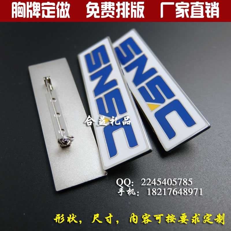 上海金属徽章,胸章,胸牌订做,长方形胸牌订做,免费设计