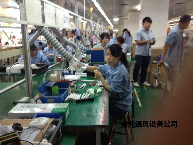 消防安检合格烟尘外排处理管道安装, 聚能通风公司长期给客户进行烙铁工业流水线焊锡除烟。服务于电子厂,焊接,实验室等诸多工作区域,为了防止有害的废气对操作人员身体带来伤害。聚能净化通风设备公司专业研发了烟尘外排管道安装的方案,换气性能和效果可以达到净化烟雾和完全排风效果,价格合理,专业,保质保量完成项目施工,良好的抽风环境。低噪音离心风机,出风管道可以采用PVC塑胶管道或者的白铁管道 风管采用进口带弹簧软管:用于焊接废气抽取,用于空调和通风装备; 回流焊抽烟罩,焊锡工位吸烟罩,流水线排烟管,流水线废气处理排放,流水线焊锡抽烟系统,抽烟管焊锡排烟等。焊锡排烟工程,机器散热工程 白铁工程、电子工厂等:
