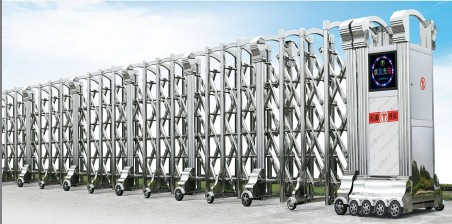 不锈钢电动伸缩门主体结构特点:不锈钢采用国际标准不锈钢原材料,经过特殊工艺制管进行折弯焊接定型制成门体。门体永不变型坚固耐用。门体用大小连杆连接而成伸缩门,大连杆连接型式为古币梅花式,小连杆连接成菱型式道闸,美观大方,坚固耐用。不锈钢伸缩门活动部位特点:伸缩门每个活动部位环节均采用不锈钢管,轴,轴瓦,不锈钢螺母,尼龙衬垫组装,组装时每个环节点加注高级润滑油,无噪音伸自缩自如,铝合金电动伸缩门主体结构与不锈钢相似,也是利用平行四边形的运动原理,采用标准的铝合金型材直接用模具压制成型,然后通过镀锌管以及交叉连杆连接而成。与传统的不锈钢电动门相比,材质更优,造型更美观,更加耐腐蚀。