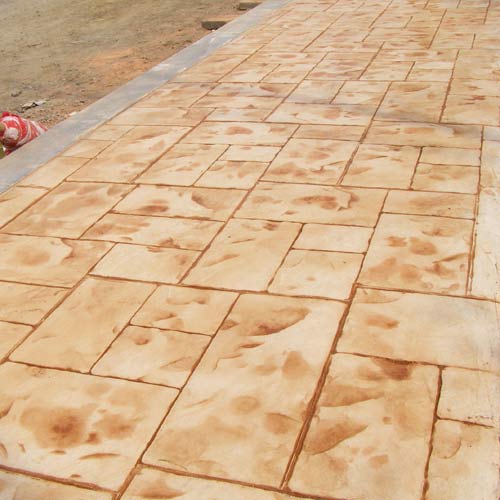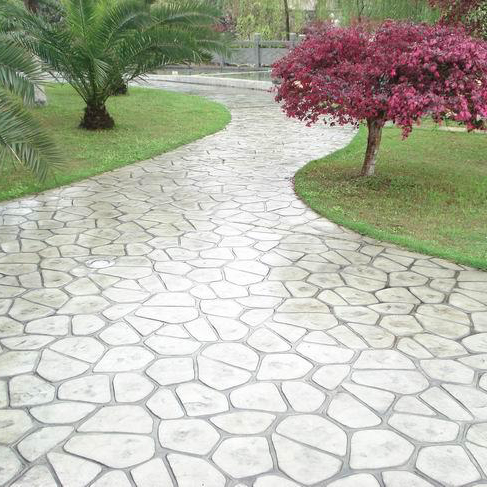 5、确认好模具排放的方向后,将艺术地坪印模模具依照一定规律依次紧密排列,拼接要求紧密,不得留有缝隙,同时模具的放置要一次放准,不能反复起模重试,模具放置和提模也应该垂直起落,不得拖拉模具。