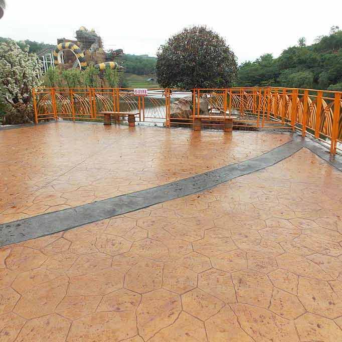 艺术压花地坪适用于装饰室外、室内以水泥为基的多种材质的地面、墙面、景点:如广场、园林小道、酒店大堂、咖啡吧、居家庭院、人行道、车行道、停车场、车库、建筑外墙、屋面以及各种公用场所地面或景观装饰工程。