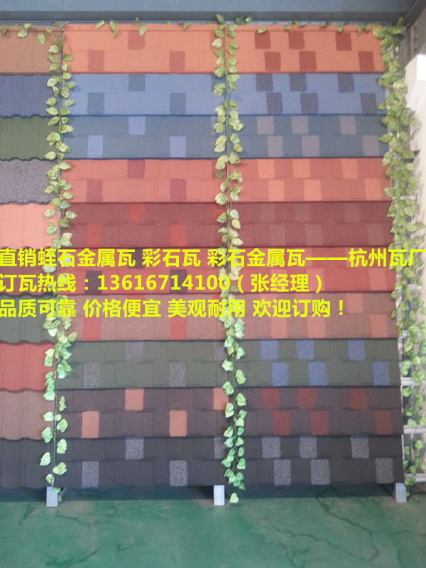 金属瓦是以镀亚铅钢板为主原料,外表经加工被敷九层特殊物质制成,色彩美丽而且经久不坏。镀亚铅钢板是以铝(55%)、亚铅(43.4%)、硅(1.6%)制成,结合铝的耐腐蚀性和亚铅的GALVANIC BEHAVIOR效果(利用非金属成分的亚铅自行掩护纲板毁损部位)而制成,经过特殊加工的金属瓦,不会因空气的氧化作用生锈,坚固的品质加以优雅的色彩,皇家先锋精制的金属瓦乃瓦中极品,能使建筑物的风格倍增。