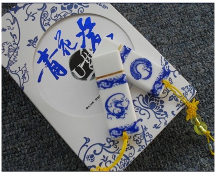 产品特性:外观采用如玉器般温润陶瓷烧制,视觉美观且手感舒适,配以素描手法的青花图饰,传神再现中国传统青花瓷设计精髓。分青花龙与青花凤,青花瓷采用精致瓷器外壳,外观独特,内存可自由选择2G 4G 8G等,整体设计方正古朴,极具中国风美感,是传统与现代科技的完美结合。市面上的U盘多为塑料与金属,我公司经过半年开发,成功的克服陶瓷与零件的误差难题,而此款U盘的价格与普通的塑料和金属价格不相上下,具有极强的竞争力。 也许有人担心陶瓷的脆性较大,青花瓷U盘掉地易碎,其实陶瓷材料具有化学性质稳定、耐腐蚀、绝缘等特点,可以作为一种经久耐用的保护性材质。而且但当其构造仅为普通U盘大小时,脆性已经大大降低。