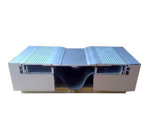 金属卡锁型变形缝装置由一块自由移动的中心板来实现变形,中心板压紧在两侧铝合金基架之间,在建筑物发生伸缩变形时能保持其水平状态。产品表面加工成锯齿形,防滑。可铺设薄型材料。