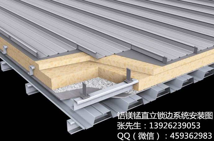 直立锁边系统是一个传统的铝镁锰板安装系统,通过使用专业的立边和咬合设备,在沿着板条长度方向上将两块板的立边进行咬合,从而将屋面或墙面连接成为一个整体。系统不需要打胶,不需要打钉,100%结构性防水。这个系统可以节省很多安装时间,尤其对于面积较大的屋面或墙面,提供了一个有效降低成本的方法。另外,直立锁边系统也非常适合气候严酷的环境,如强风、雨雪较大的地方。直立锁边系统的立边高度为65mm,使建筑物呈现出一种具有韵律感和现代感的外观。