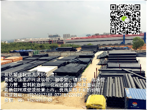 2015年湖南易达塑业加大投入1亿8千万扩大生产厂区,提升生产能力,大量备货市政工程管道,库存充足,省内24小时内可到货,并可提供权威机构出具的检测报告,合格证,企业资质。