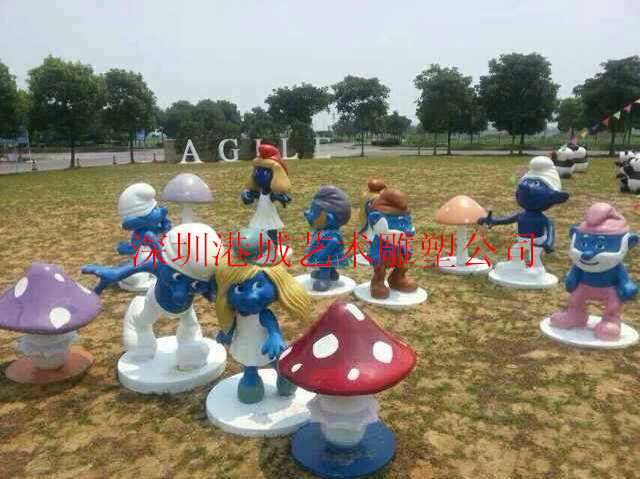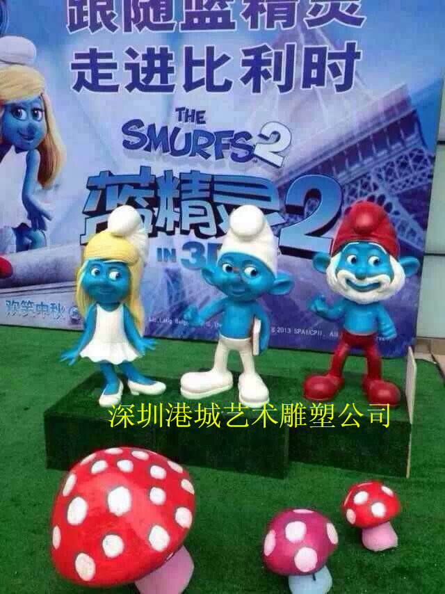 深圳港城牌卡通玻璃钢蓝精灵雕塑/来图定制装饰摆件