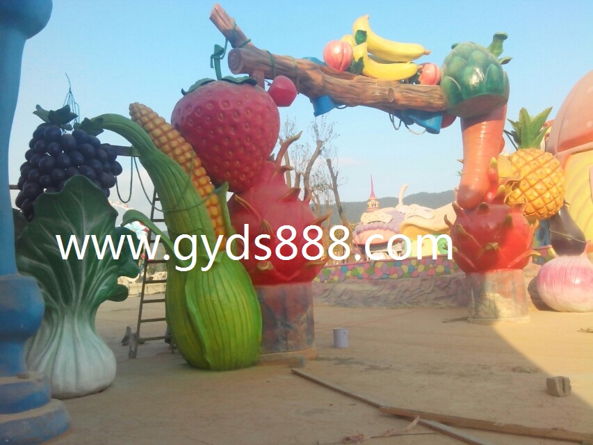 门头玻璃钢制品 水果乐园雕塑 动物装饰门头