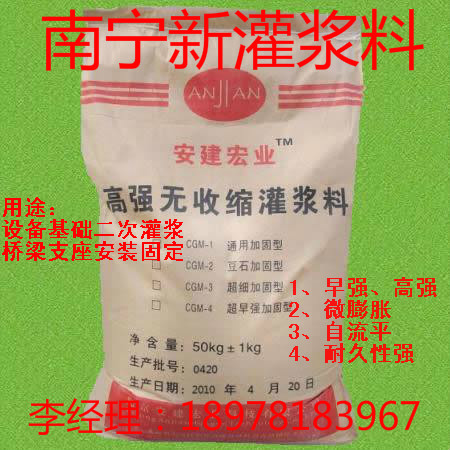 1、主要用于:地脚螺栓锚固、裁埋钢筋,灌浆层厚度30mm<δ<200mm的设备基础二次灌浆。有抗油要求的设备基础二次灌浆称谓普通灌浆料