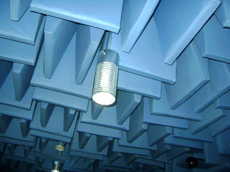 吸声尖劈是一种用于消声室的特殊吸声结构。通常可分为尖部和基部两部分。安装时在尖壁和壁面之间留有空气层。其结构是用直径3.2-3.5mm的钢丝制成一定形状和尺寸的骨架,外面套上玻纤布、塑料窗纱等罩面材料,里面装以多孔材料,如玻璃棉毡、玻璃纤维、矿渣棉、泡沫塑料等。从尖劈的尖端到基部,声阻抗是从空气的特性阻抗逐步过渡到多孔材料的阻抗的,因而实现了很好的阻抗匹配,使入射声能得到高效的吸收。尖劈的声学特性常用声压反射系数表示,反射系数为0.1时(吸声系数为0.99)所对应的最低频率,称为截止频率,它主要取决于尖劈的容重和尖部的长度L1。影响尖劈低频吸声的主要因素是尖劈基部和空气层。在实际应用中,尚有平顶型、直条状和层状阶梯型等尖劈。