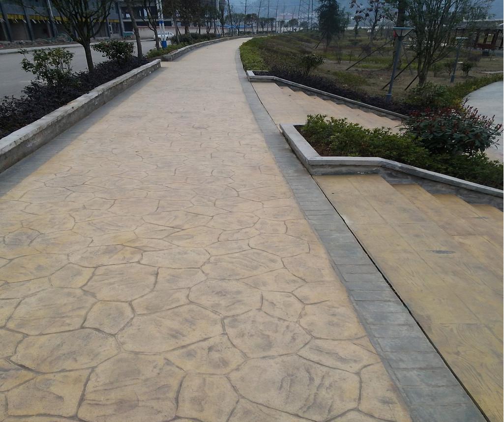 勤路装饰混凝土构成材料及工具包括:彩色强化剂,着色脱模粉,保护剂,乳液,压模及纸模模具,专用工具等。