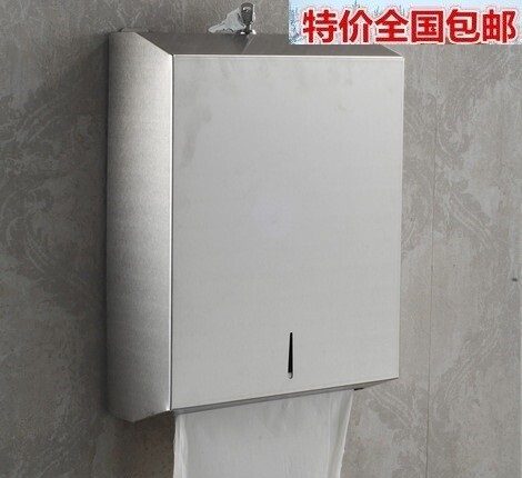 不锈钢洗手间擦手纸箱 优质不锈钢擦手纸箱。 规格尺寸:宽28厘米,高37厘米,厚10厘米。大 量适用于卫生洗手间装擦手纸用。顶部带钥匙,美 观大方,使用方便,欢迎惠顾!