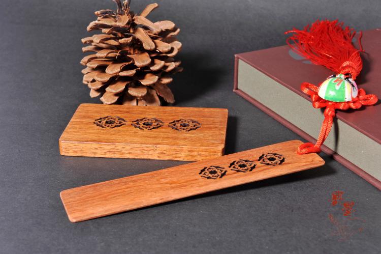 书签采用名贵红木花梨木为原材料,加上艺术化的雕刻或镂空的图案,造型独特迎新。书签比折书等记页码方式更方便,对书的损坏度更低,是很好的一种记页码方式。实用,具有收藏价值。