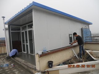 彩钢板活动房,是用彩钢夹芯板与压型板C型钢组合而成的房屋,简称;彩钢活动房,它以独特的艺术性 ,装饰实用性而倍受市场青睐,特点为:隔热保温,安装,拆卸方便,灵活,,无需基础载荷,无需二次装修等。 主要适用用于公共建筑,工业厂房的屋面,墙壁;洁净厂房以及组合冷库,楼房接层,商亭,保安厅等等,同等面积下是溷凝重量的1/30,比同等厚度的溷凝保温强10倍,回收使用率在80%以上。它具有保温,防水一次完成,施工速度快,经久耐用,美观大方等特点。
