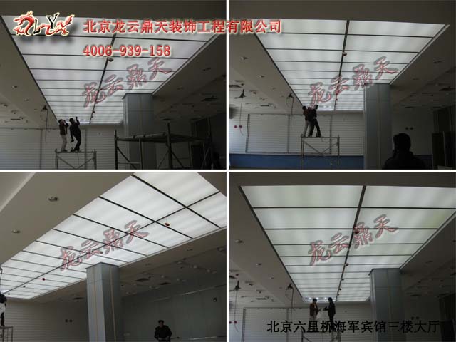 3、龙云鼎天软膜天花可视施工现场任意降低或提升房子天花的高度,也可做斜位或高低级。