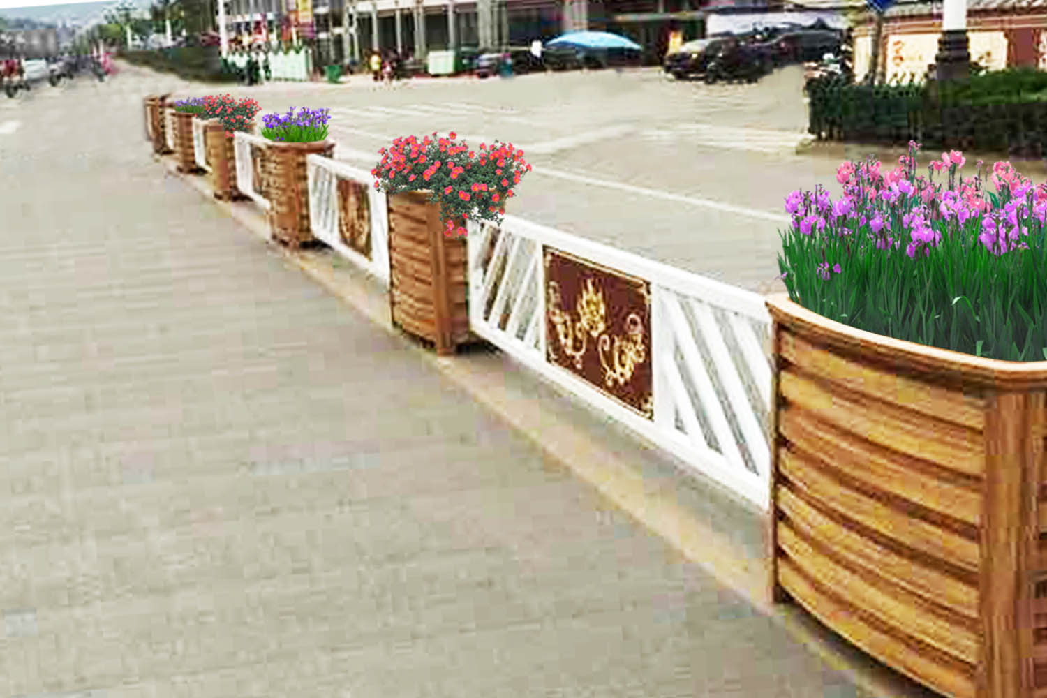 道路隔离文化花箱+护栏组合、绿化环保花箱、、园林花箱