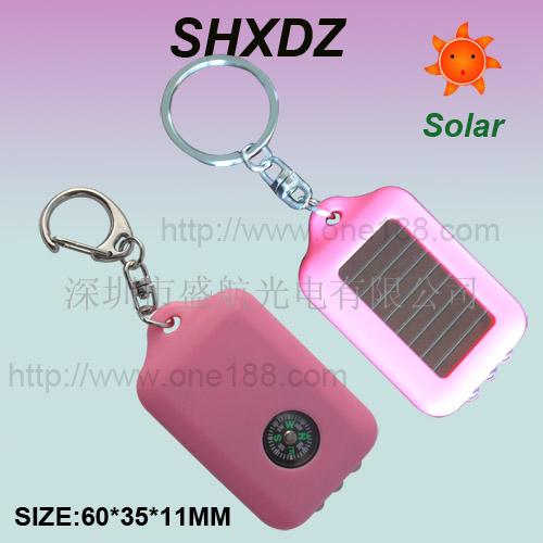 迷你指南针太阳能小手电筒采用太阳能供电,太阳能非晶硅在白天弱光照射下可充电,本产品无需更换电池,内置蓄电池使用环保可充电池,产品白天充电供晚上走黑暗地方时使用.节省了能源起到了环保作用。在正常使用情况下,使用寿命在10万小时以上。本产品使4.5V10MA非晶硅太阳能电池板,发光体使用3颗直径5mm超亮白光LED灯(16000MCD左右*3颗=48000MCD),指南针直径14MM, 指南针可以辨别方向,又可以当控制开关,只需按住指南针,LED灯就会亮,松开即灭.采用独特的造型设计,外观时尚,亮丽,小巧,时尚美观大方,携带方便。
