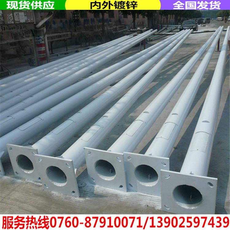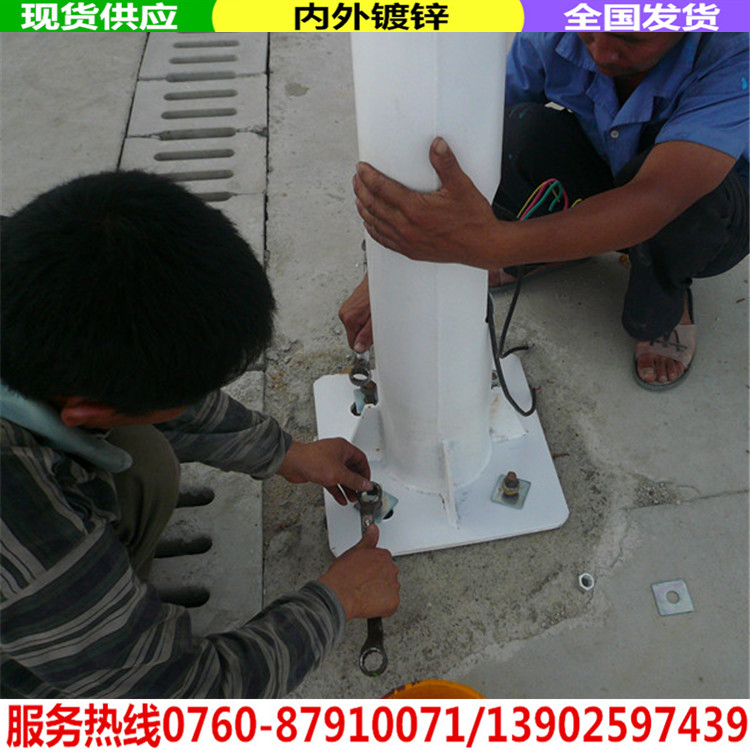 热镀锌是钢管在热浸的条件下对表面镀锌,它的附着力很强,不容易脱落,热镀锌管虽然也出现锈蚀的现象,但在很长的周期可以满足技术、卫生要求,所以大家一定要选用热镀锌灯杆和监控杆,避免一些不良商家用黑管或者冷镀锌处理的材料。