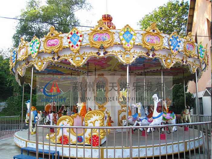 24座仿上传动转马技术参数:电压:380V/220v 总功率:6.5KW 设备尺寸:Φ8.5米*6米 运行高度;1.4米
