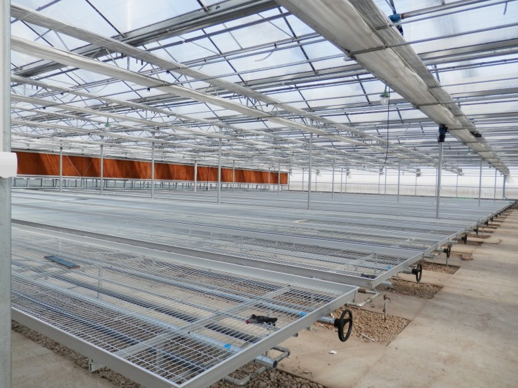 移动苗床标准高度0.75m,可以进行微调,标准宽1.65m,也可根据温室宽度定尺,长度可根据用户要求定作;移动苗床网网孔为13cm*3cm或12*2.5cm,丝径:3mm*4mm或3mm*3mm,移动苗床网表面处理为热镀锌,防腐性能高,承重能力好,寿命长;移动苗床为铝合金边框