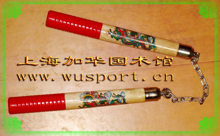 印龙彩色木头双节棍:手柄有红色和黒色两种颜色,印上龙,虎,还有别的很多图案,花样新颖。
