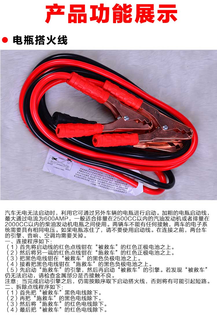 适用范围:适用与各种机动车辆,特别适用于经常野外作业、长途运输、外出自驾、野营出游等车辆的路途安全防备