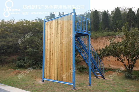 器材使用方法:所有学员一起在不借助任何外力的情况下,仅依靠自己的身体和团队的凝聚力和智慧翻越4米高的朗玛牌毕业墙。